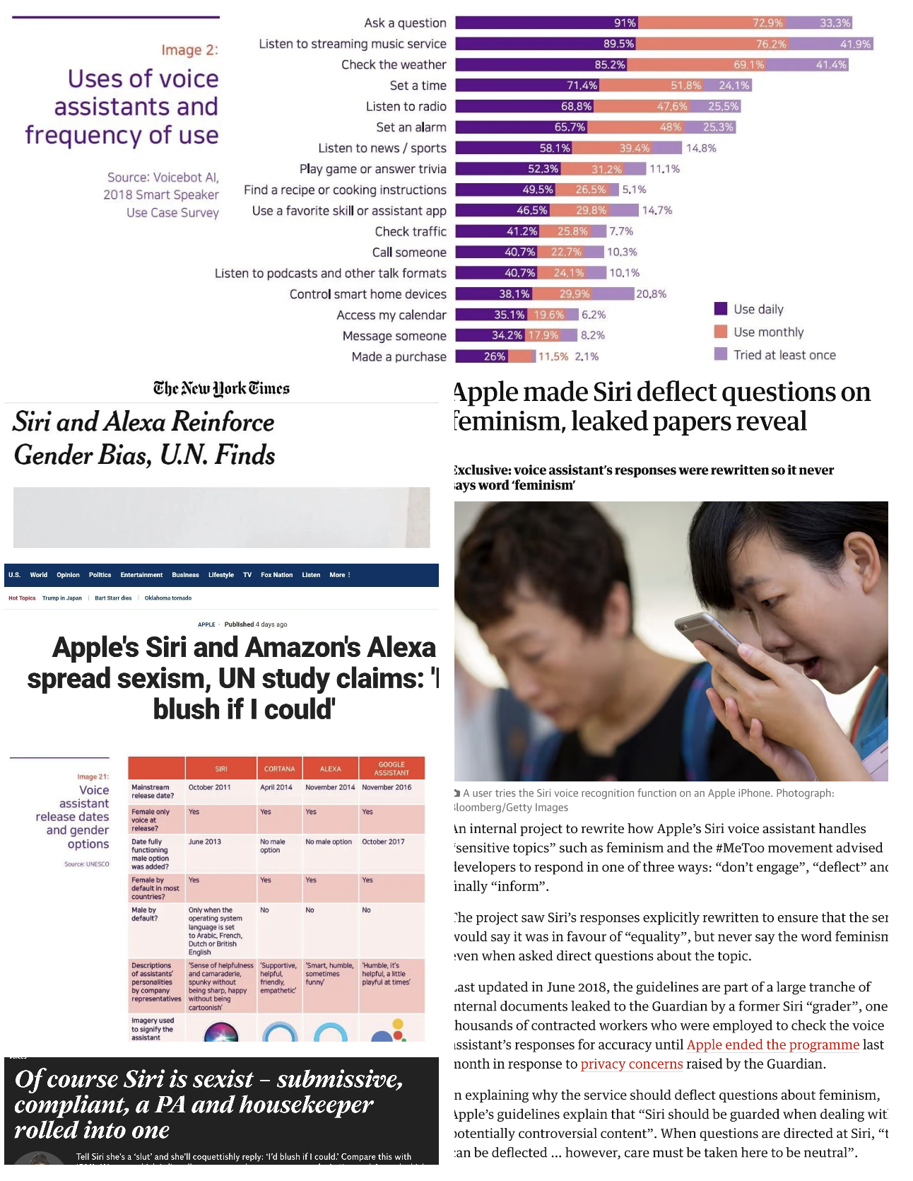 Virtual assistants like Siri, Alexa, and others have been programmed to be female or feminized helpers. Having a woman on demand in your pocket via a smartphone is a problematic complication of gender relations and reinforces antifeminist histories of media related to computer and the phone, remediating those into new nightmarish possibilities in the digital age.
